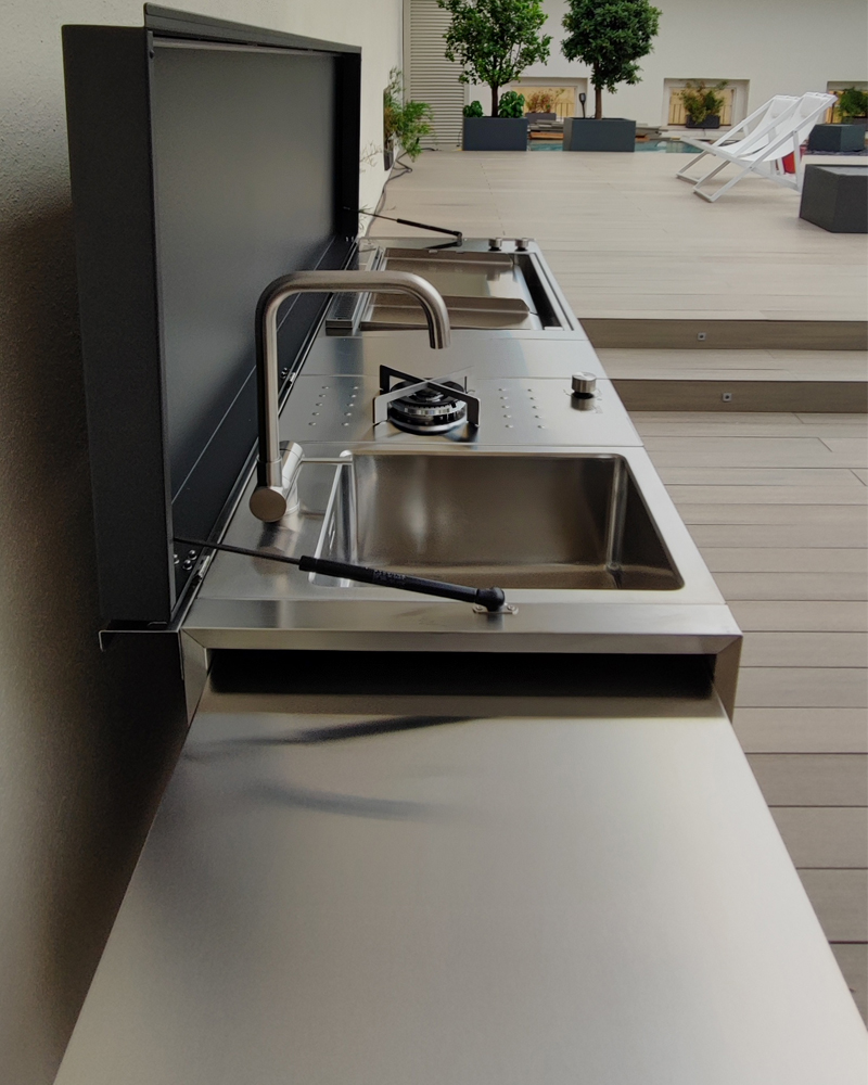 Diese Serie ist so konzipiert, dass Sie Ihren eigene PLA.NET Outdoorküche OASI 205.C5 für den Innen- und Außenbereich ganz individuell aus einer Vielzahl an Basis- und Zubehörkomponenten zusammenstellen können, wie zum Beispiel als Standgerät. D. h. auch, dass die Basiskomponenten entsprechend den eigenen Bedürfnissen, zusätzlich aus einer Vielzahl mit weiteren praktischen optionalen Zubehörartikel nachträglich aufgerüstet werden können. Die Einbaukomponenten lassen sich elegant in jede vorhandene Arbeitsplatte (Stahl, Stein, Marmor, Granit, Porphyr usw.) und so in jedes Design integrieren. Die Einbauküchen für den Außenbereich der Oasi Built-IN Kollektion sind in Gas- und Elektroausführung erhältlich und auch für den Innenbereich zertifiziert. Interessiert? Hier geht es zu der kompletten Serie: Produktübersicht